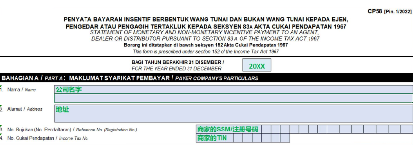 If the total yearly income paid to an Agent, Dealer, or Distributor is more than RM5,000, the business should prepare the CP58 form.